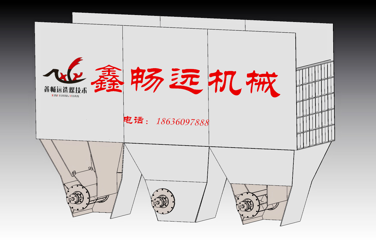 洗煤機是篩下空氣室。洗煤機主要由風箱、上機體、下機體組成。選煤廠使用的洗煤機一般是U形振蕩的篩下空氣室結構,每個隔室都自成一個U形振蕩體,不易產生相互干擾,減少了能耗,同時也防止在進氣期或排氣期內水流撞擊,使水流平穩(wěn)升降,改善了物料的分選條件。頂水沿機體全寬度均勻給入,對床層的作用力均勻,有利于跳汰制度的全寬度上均勻分布,使床層平穩(wěn),改善了分層過程和排料的精度。采用微電腦數(shù)控系統(tǒng)控制,采用按鍵操作可任意調整跳汰制度。